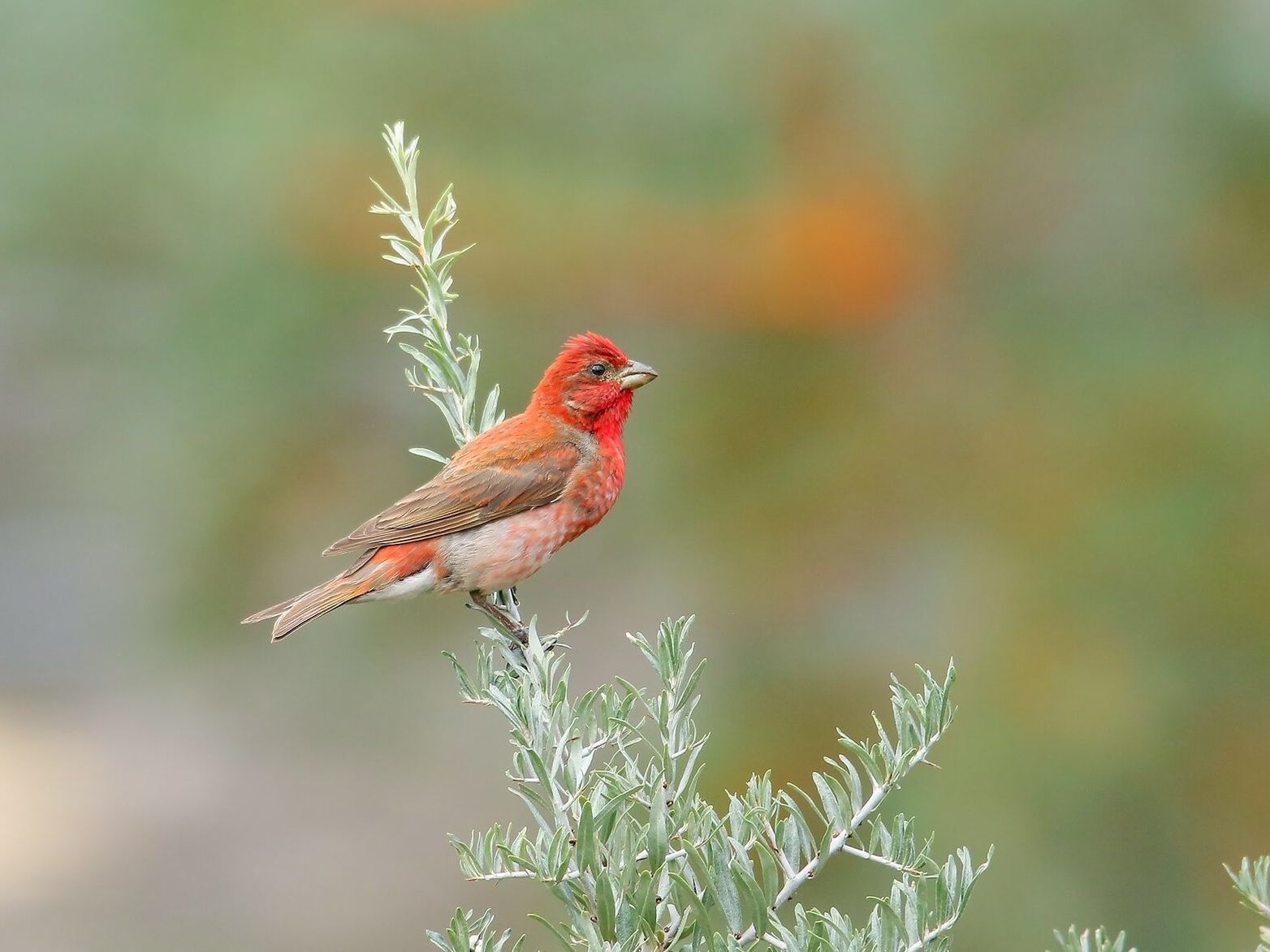 Как выглядит. По окраске самца чечевицы можно изучать все оттенки красного: спина, хвост и крылья у него буровато-красные, брюшко розоватое, а голова, зоб и грудь киноварно-малиновые. Самки и годовалые самцы не такие яркие: они оливково-серые, более светлые снизу.